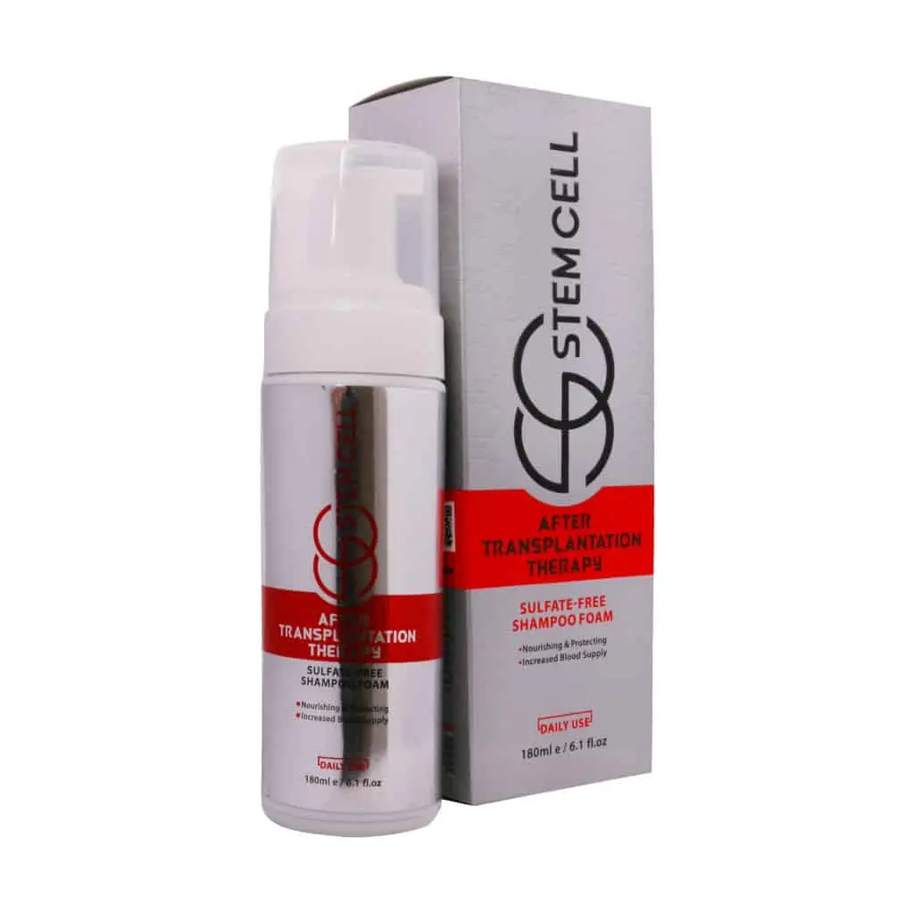 پس از مرطوب کردن ملایم پوست سر با آب ولرم، مقدار کافی از فوم شستشوی بعد از کاشت مو استم سل را به آرامی روی نواحی کاشته شده اسپری کنید. بگذارید چند دقیقه بماند تا ترکیبات فعال به خوبی عمل کنند، سپس با آب با فشار کم و به آرامی آبکشی نمایید. نیازی به ماساژ دادن نیست و تنها اجازه دهید آب به آرامی روی پوست سر جریان یابد.