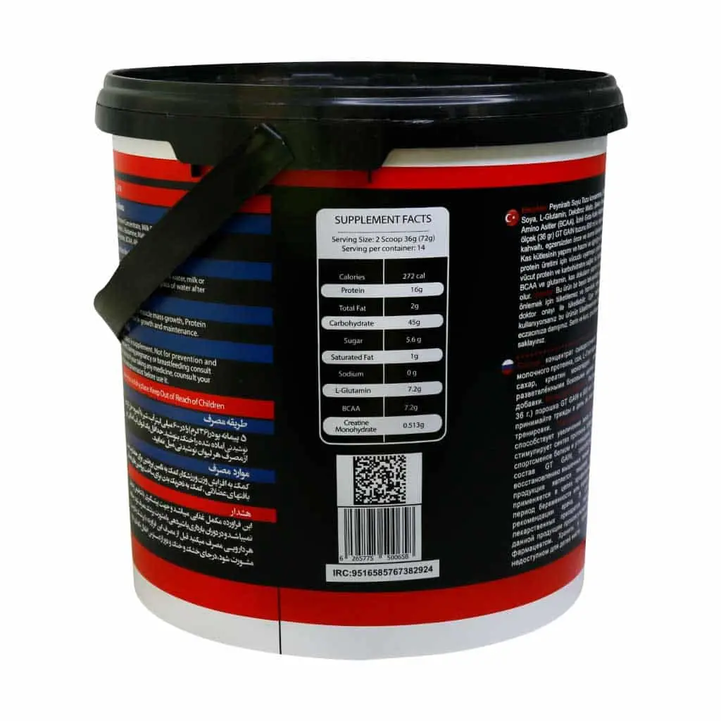 پودر افزایش حجم جی تی گین با ترکیب متعادل کربوهیدرات ها، پروتئین ها، ویتامین ها و مواد معدنی ضروری، به گونه ای طراحی شده است که نیازهای بدن شما را برای رشد عضلانی، ریکاوری و تأمین انرژی برطرف کند. این محصول با دوزهای دقیق و ترکیبات با کیفیت، به شما اطمینان می دهد که هر پیمانه، گامی مؤثر در جهت رسیدن به اندام دلخواهتان است.